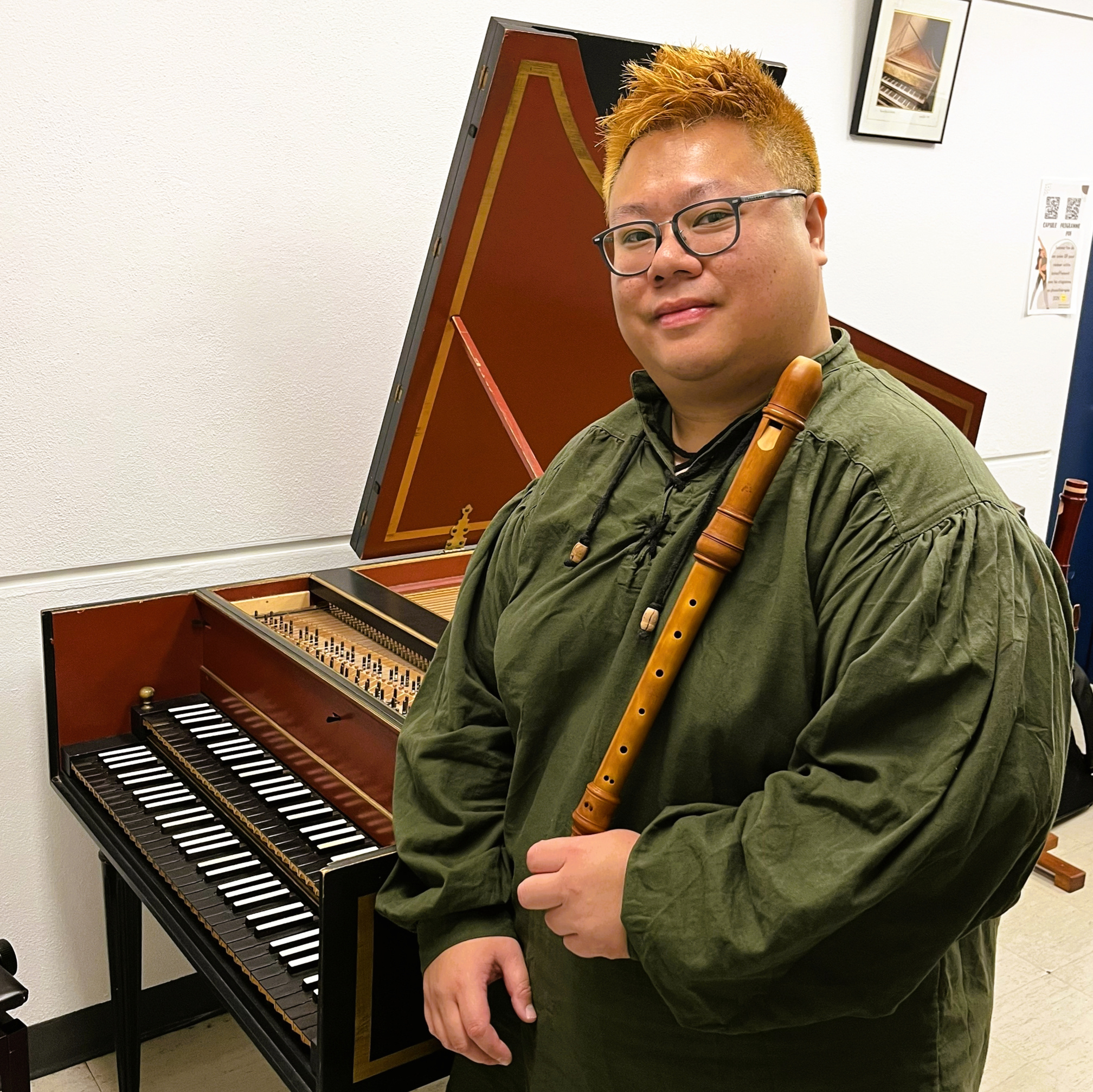 Kevin Wun Pong Yeung is a musician, piano teacher, and visual artist based in Quebec City, and a founding member of Folia Sinfonia, where he performs on recorders and keyboards.Kevin’s musical journey began at the age of five with the melodica, soon followed by piano studies under Portuguese professor Theresa Veiga. With her guidance and countless hours of practice, Kevin developed strong technique and artistry on the piano, later earning certificates in Practical Piano and Music Theory from the Associated Board of the Royal Schools of Music (ABRSM), UK.Deeply inspired by his professor, Kevin developed a lasting passion for Baroque music, which has become central to his career. His interests also extend to Medieval, Renaissance, and even Jazz repertoire. Alongside the piano and harpsichord, Kevin is an accomplished woodwind player: he performed alto recorder in his elementary school ensemble, saxophone and clarinet in his middle school orchestra, and sheng (笙), a traditional Chinese mouth organ, in his school’s Chinese orchestra. As a child, he actively participated in concerts and community performances across schools, shopping malls, and cultural events.Today, Kevin continues to expand his expertise through studies in partimento and Baroque composition, as well as formal harpsichord training. He is also a member of the Quebec City recorder ensemble Sofàbec, where he explores the recorder’s rich repertoire in ensemble settings.